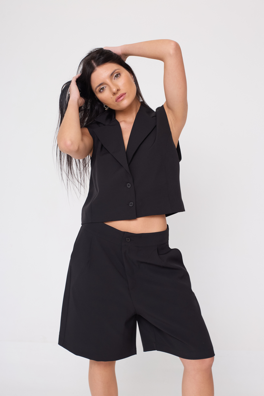 Descripción: Chaleco confeccionado en tela sastre, lo que le da un toque elegante y sofisticado.