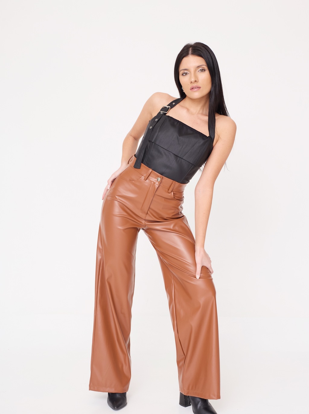 Descripción: Pantalón confeccionado en ecocuero es la elección perfecta para elevar tu estilo. Su diseño moderno y versátil se adapta a cualquier ocasión, ya sea una salida con amigas o un look más formal.