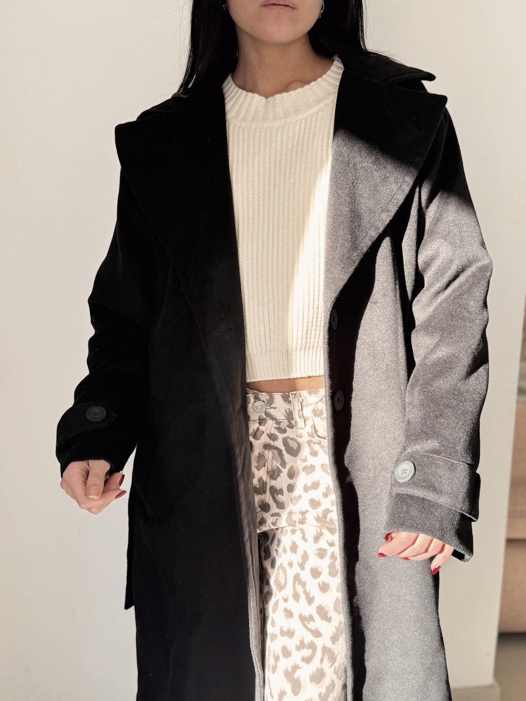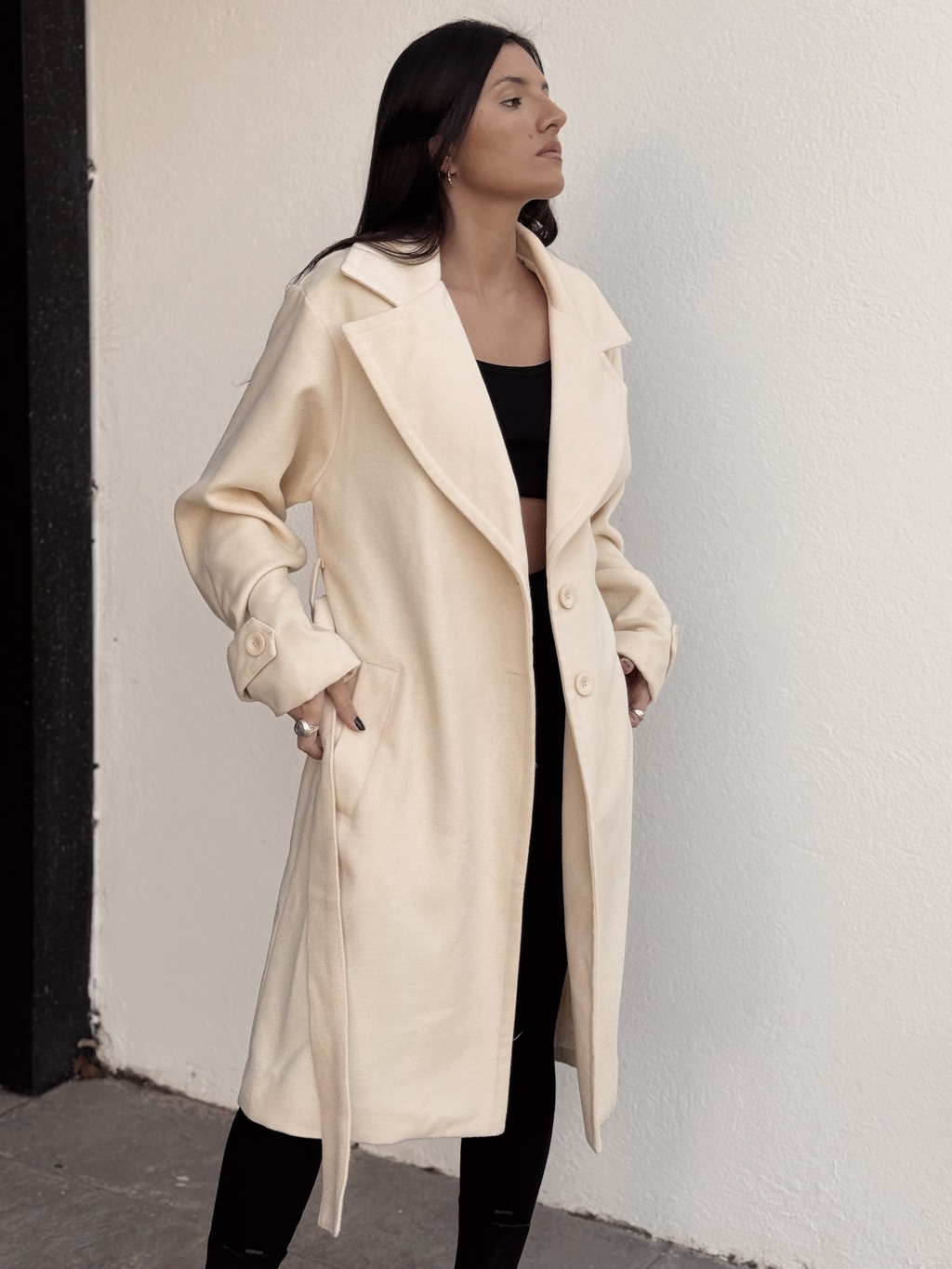 Este tapado de paño forradoen su interior y lazo es el abrigo que estabas buscando para enfrentar el frío con estilo. Su diseño clásico y elegante se adapta a cualquier ocasión, ya sea para un día de oficina o una salida con amigos.